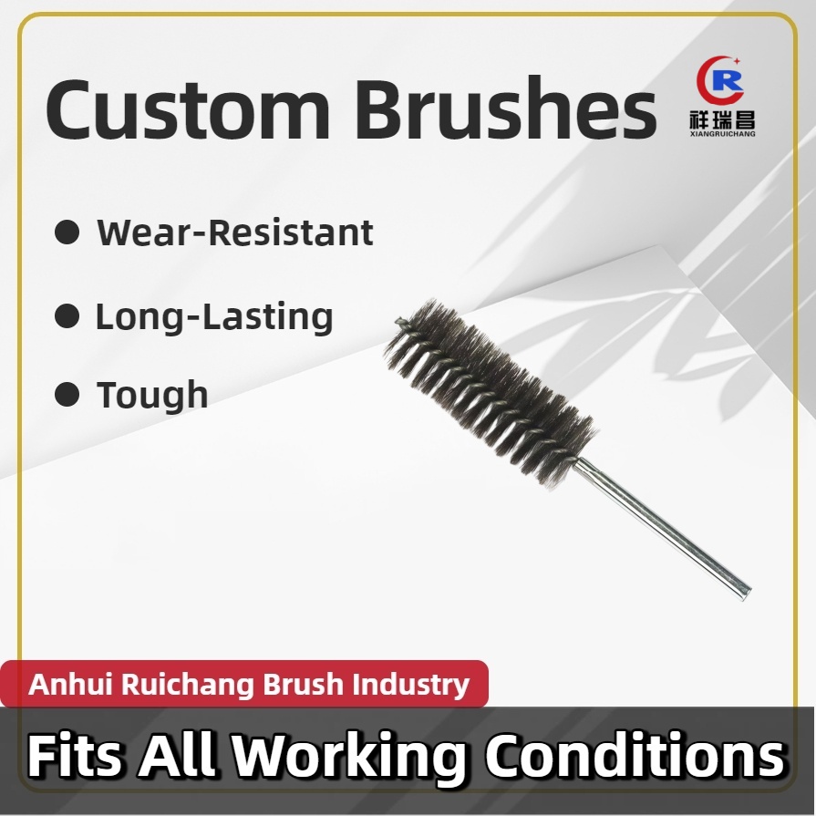 ステンレスワイヤーパイプブラシは、ステンレスワイヤーを骨組みとし、ブラシのフィラメントを撚り合わせて配置した工業用清掃具です。主に金属パイプのサビ取り、バリ取り、内壁洗浄に使用されます。ブラシのフィラメントは、高硬度、耐摩耗性、耐食性を備えた高強度ステンレス鋼素材で作られています。パイプ内壁のサビ、溶接ノロ、油汚れなどの頑固なゴミを効率よく除去でき、仕上げ加工後の穴表面の微細なバリも除去し、内穴の平滑性を向上します。球形のブラシヘッドは自動的にセンタリングと校正を行うことができ、死角なくパイプ壁を 360 度カバーし、テールデザインを備えた一部のモデルは長くて細いパイプの奥深くまで入り込むことができます。ブラシヘッドの直径は20mmから130mm、全長は25.4cmから60.96cmまでのさまざまな共通仕様があり、従来産業の小径金属パイプに適しています。その主な利点は、強力な錆除去能力、高い耐久性、幅広い適応性、および手動と電動の両方に適応し、手動または駆動装置にクランプして使用できることです。使用時の推奨速度は50~100 rpmで、高温高速乾式研削を避け、軽い潤滑油を使用すると効果が向上します。